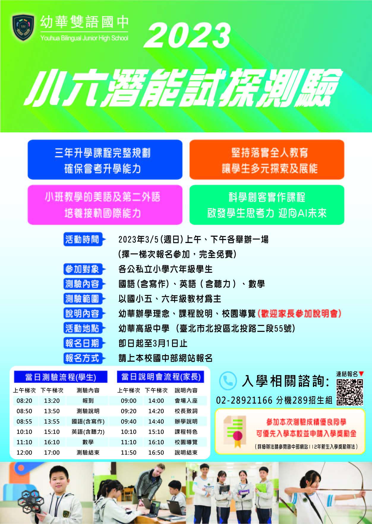 七、檢附「112幼華小六潛能試探測驗」活動簡章電子檔,惠請協助於貴校網頁連結公告。