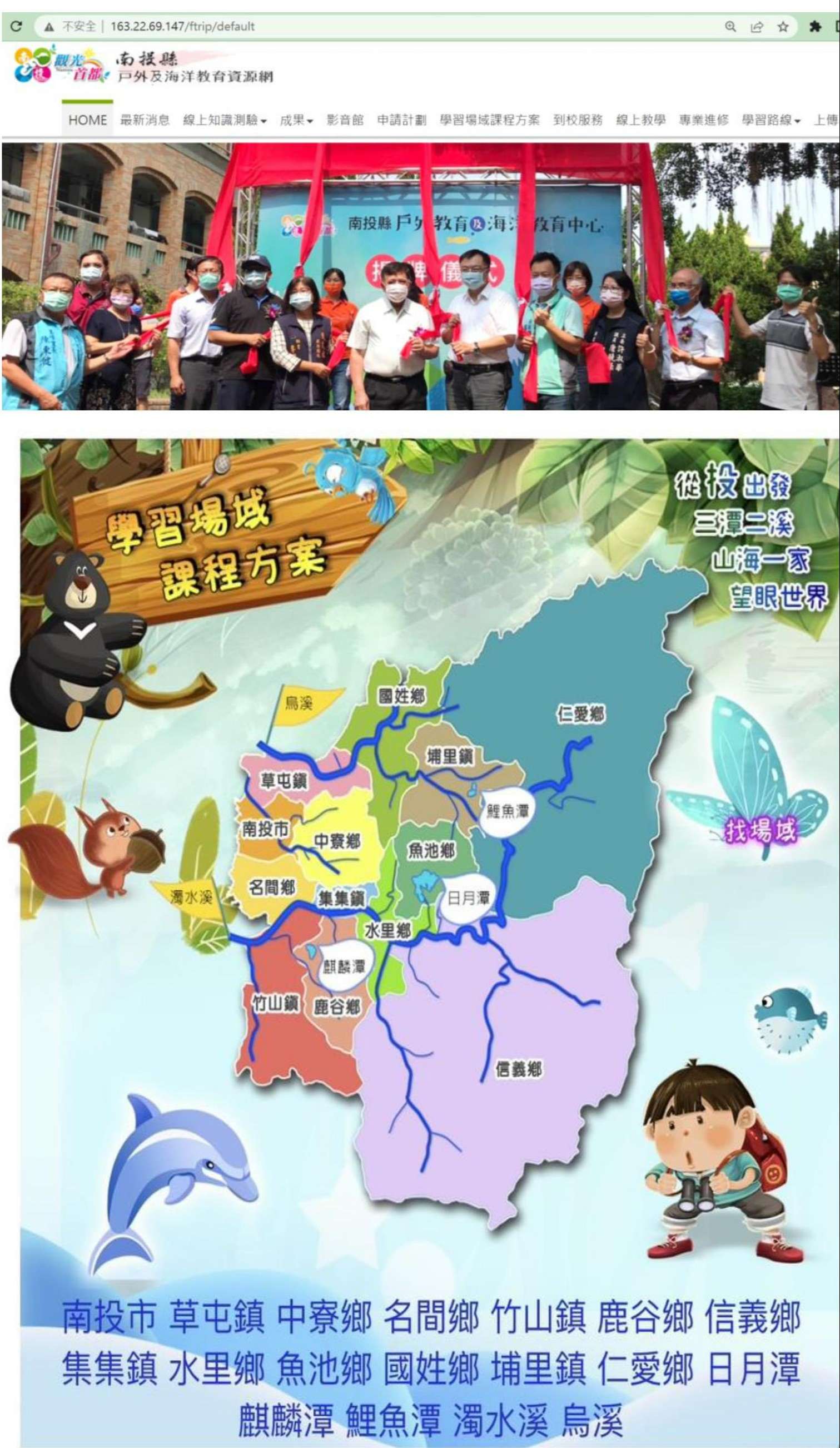 三、該縣府已就上揭場域建置「南投縣戶外及海洋教育資源網」,提供各界舉辦戶外及海洋教育(含校外教學、畢業旅行等)之參考,並將各優質場域課程方案置放於該網頁「課程方案」 分頁內(如附件)。