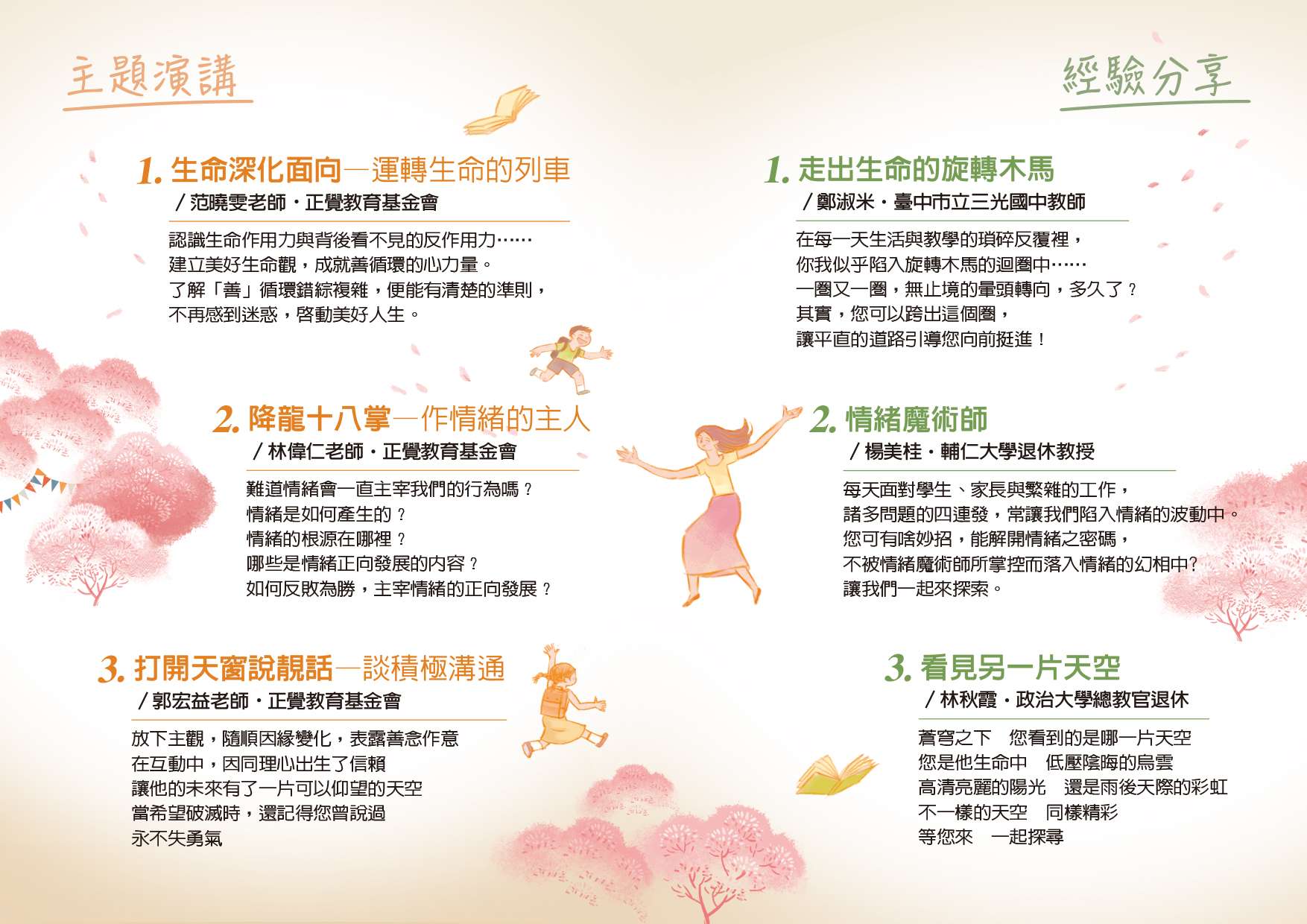 三、本校與財團法人正覺教育基金會合辦2023年生命教育「生命的圓滿——尋覓教師的春天」教師研習活動,規劃如 下: