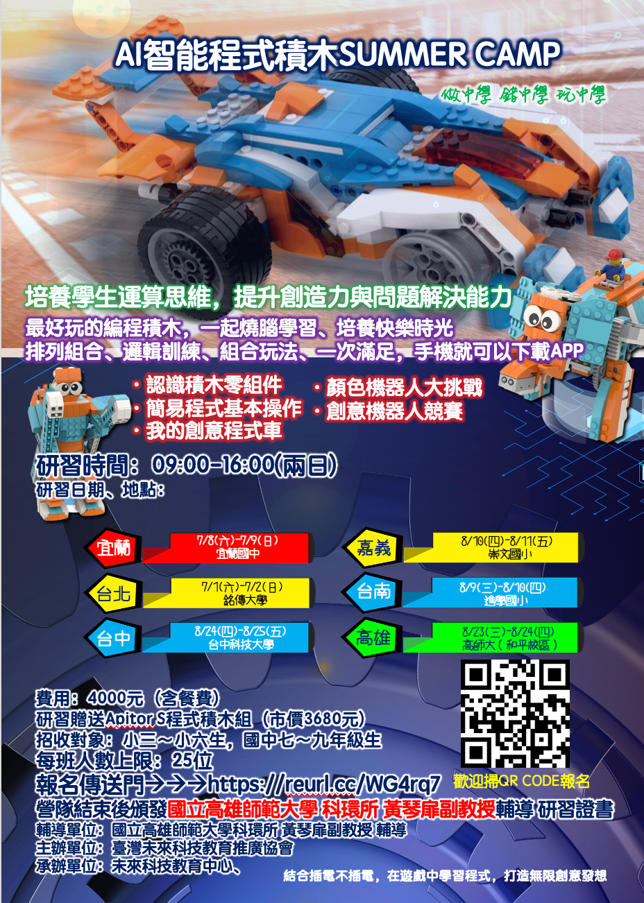 三、費用:4000元(含餐費)研習贈送Apitor S程式積木組(市價3680元)。