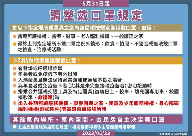 為防治嚴重特殊傳染性肺炎,進入本公告所示場所應佩戴口罩,並自中華民國112年5月31日生效