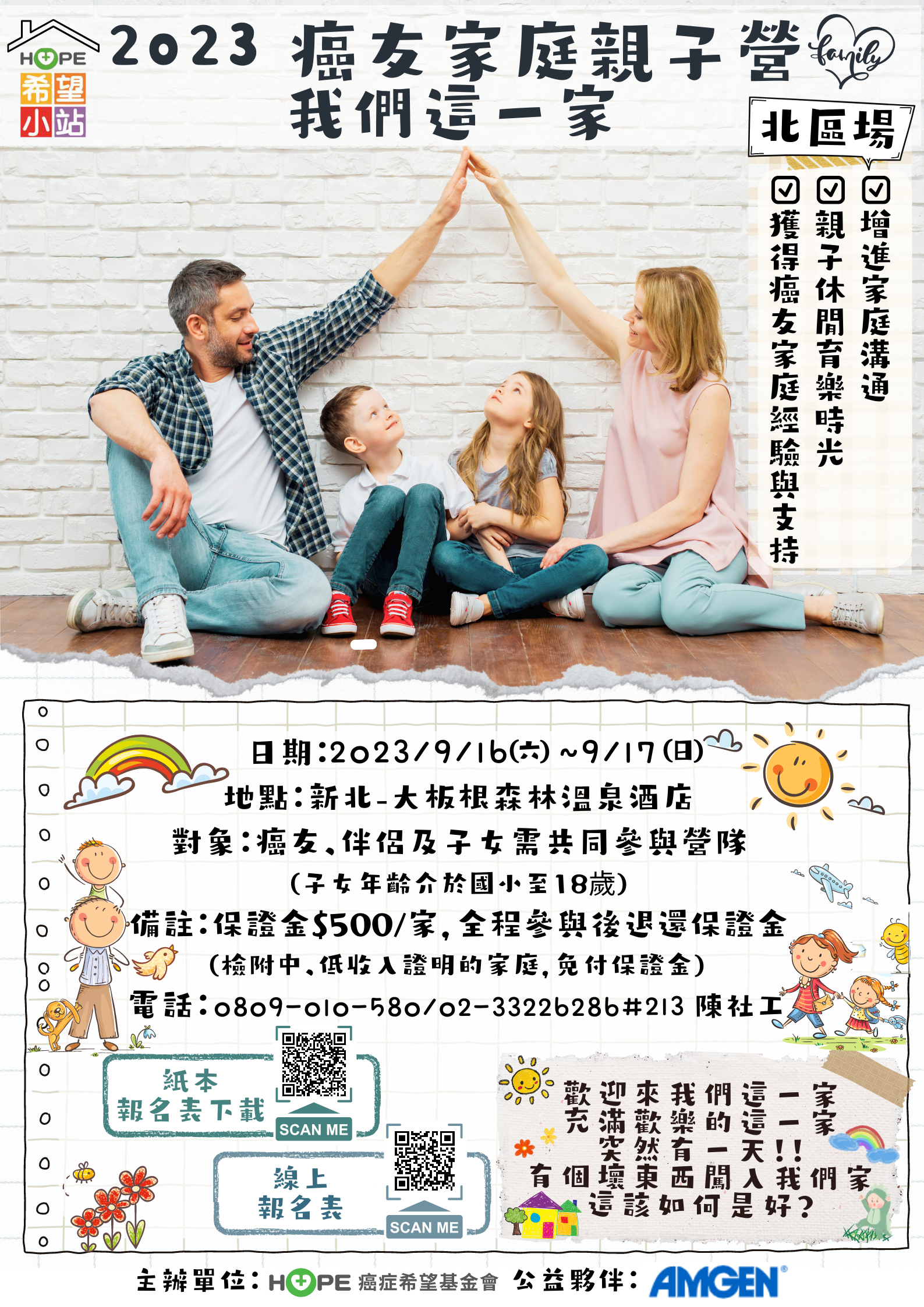檢送本會「癌友家庭親子營」活動報名簡章,敬請協助轉知符合資格之學生家庭,請查照。
