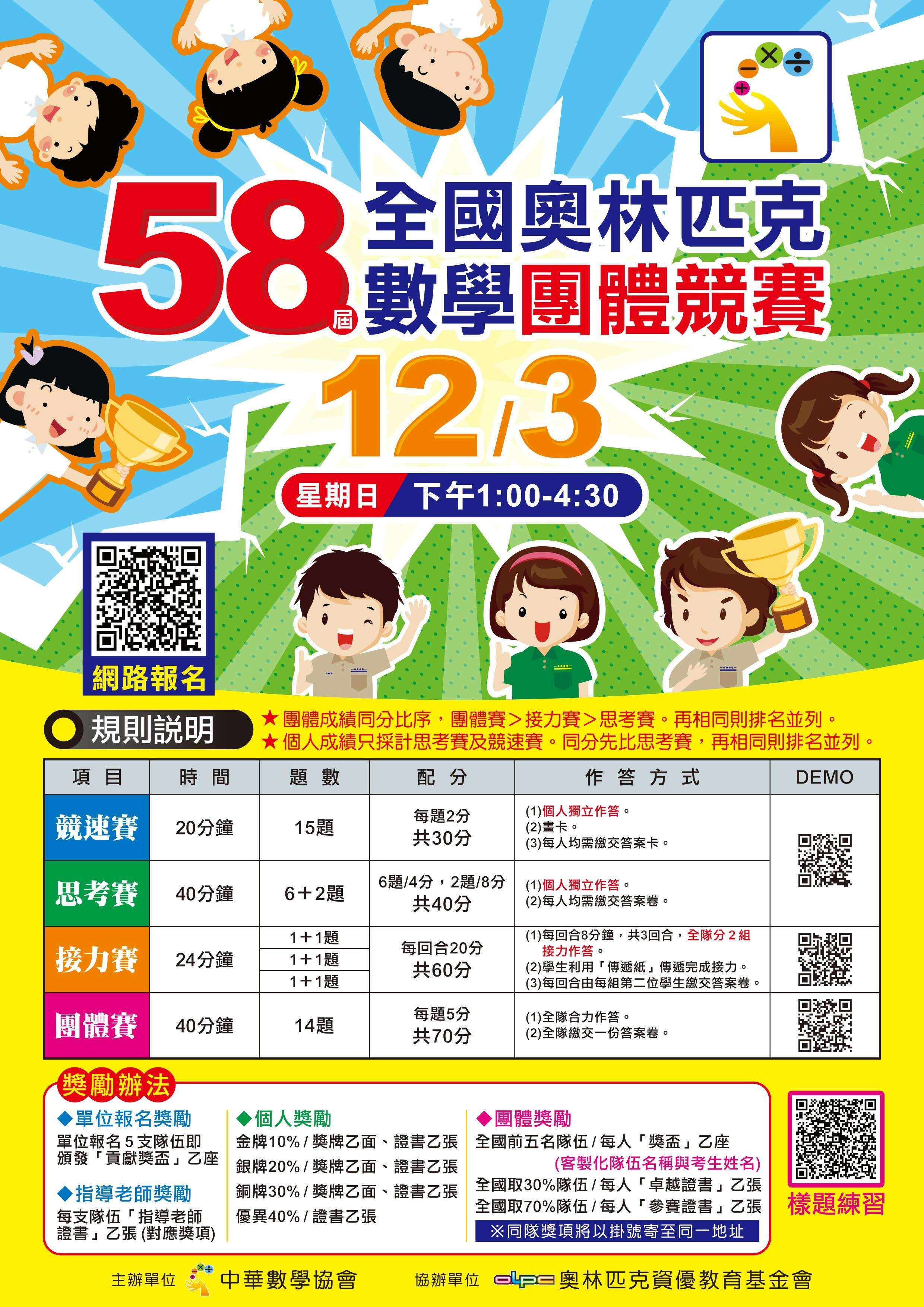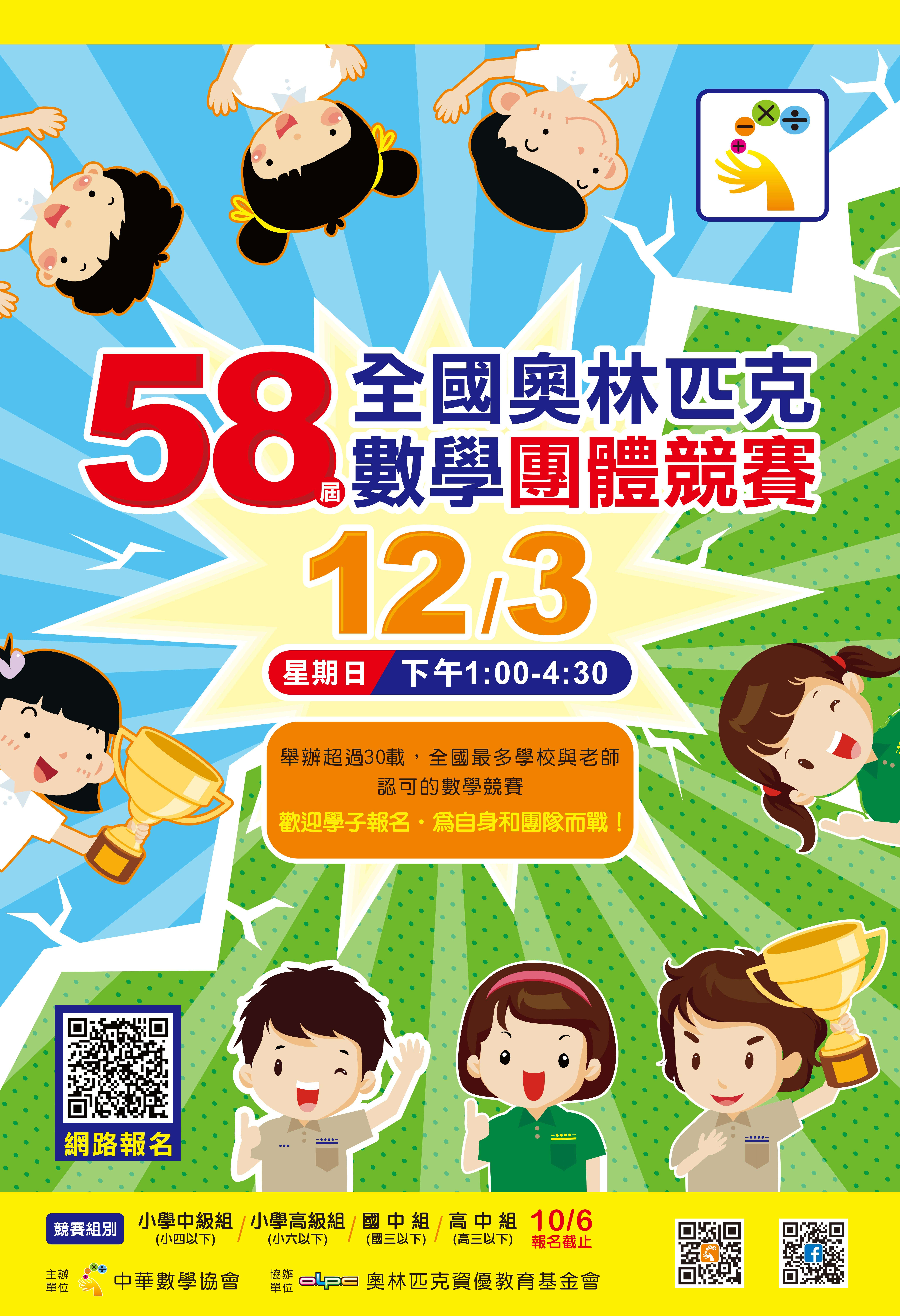 二、檢附「第58屆全國奧林匹克數學團體競賽」競賽活動相關文宣,供參閱。