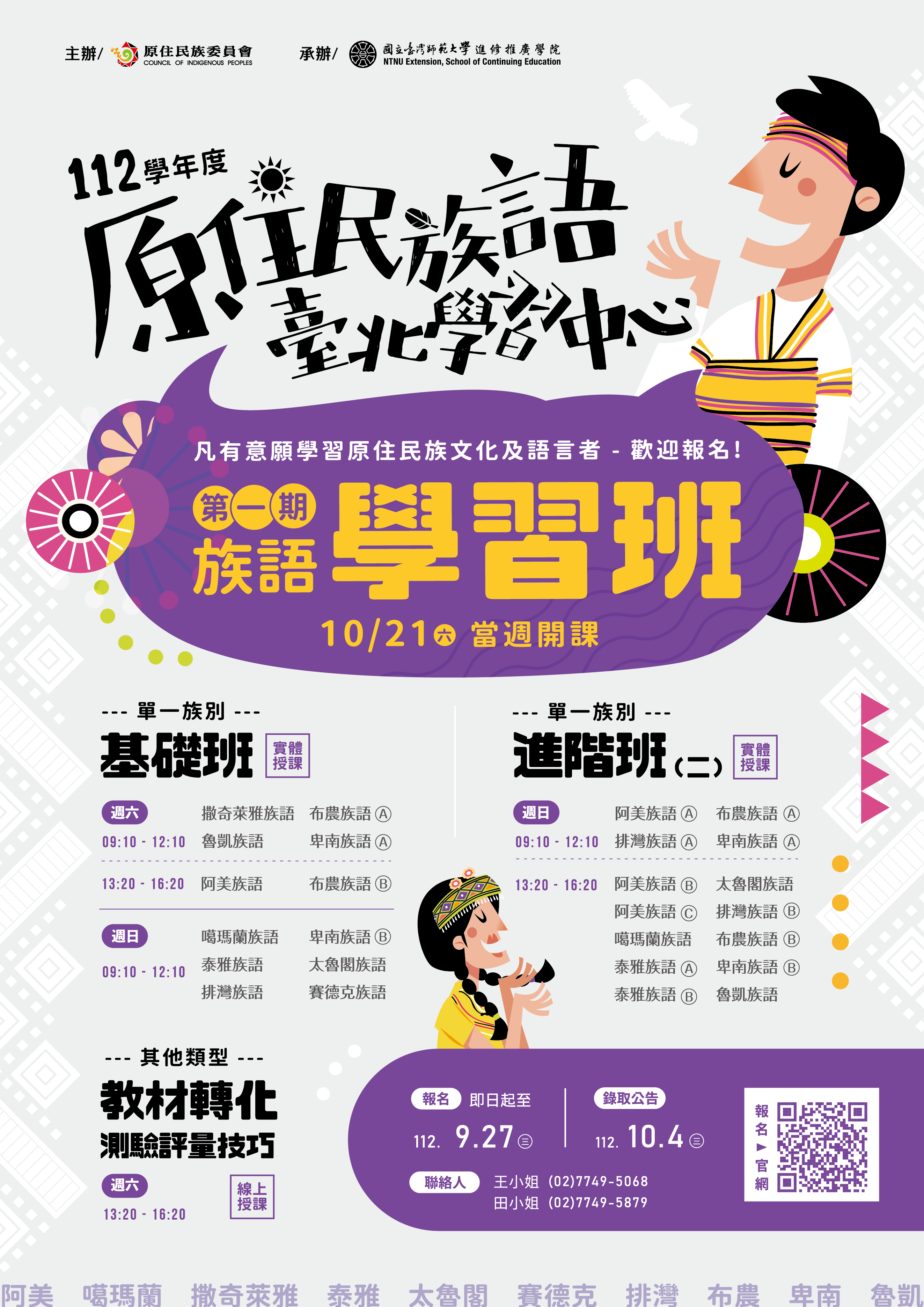 二、為協助強化原住民族語言師資教學專業知能,期有效提升原住民族語言教學質與量,並增進族語傳承與發展之深度與廣度,國立臺灣師範大學於112學年度持續辦理旨揭專班。