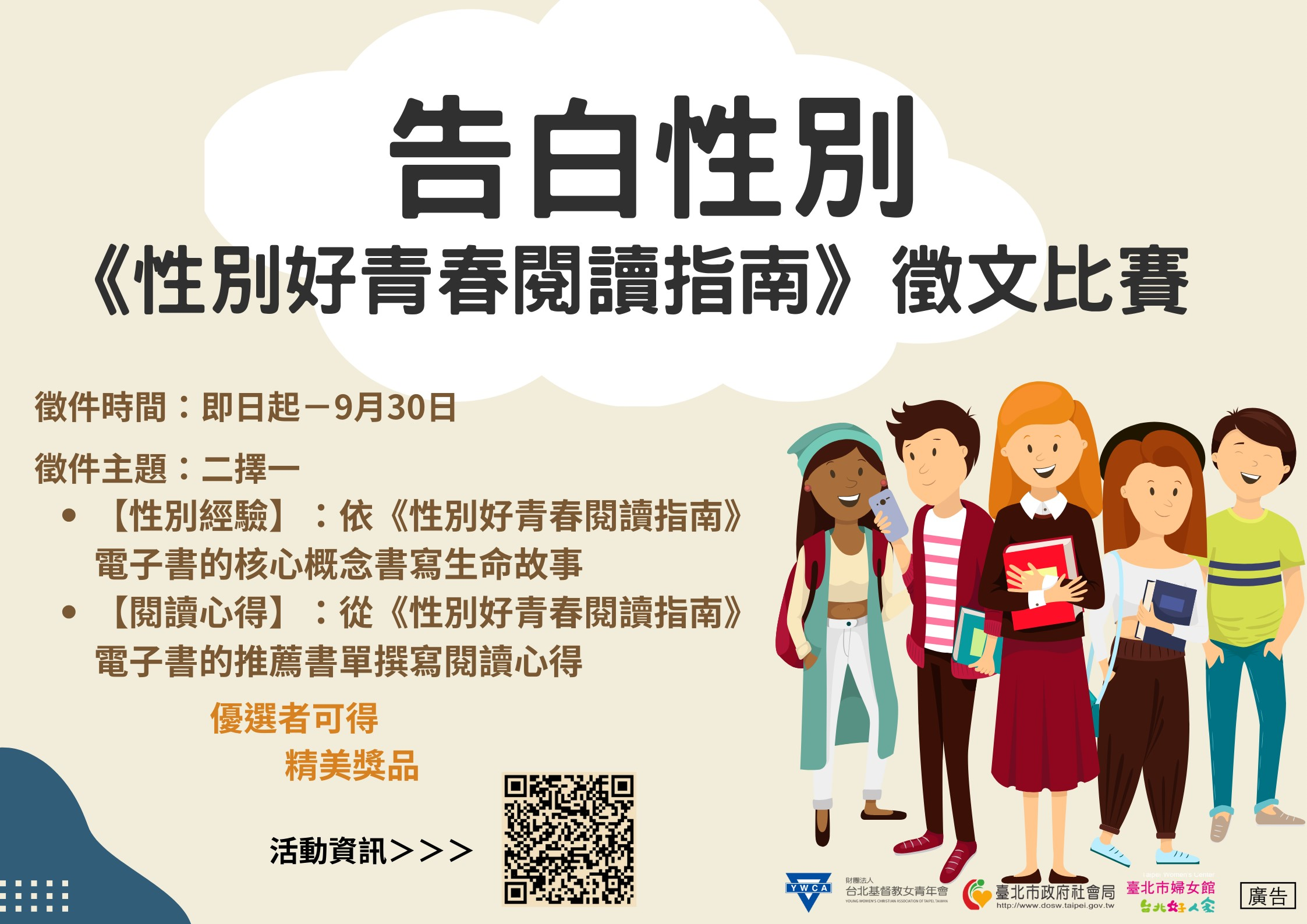 二、臺北市政府社會局委託台北基督教女青年會經營管理臺北市婦女館,本計畫的目的係根據臺北市婦女館111年制訂的性列平等教材《性別好青春閱讀指南》辦理徵文比賽,邀請青少年、大專院校學生以及一般大眾,述說性別經驗或閱讀心得。