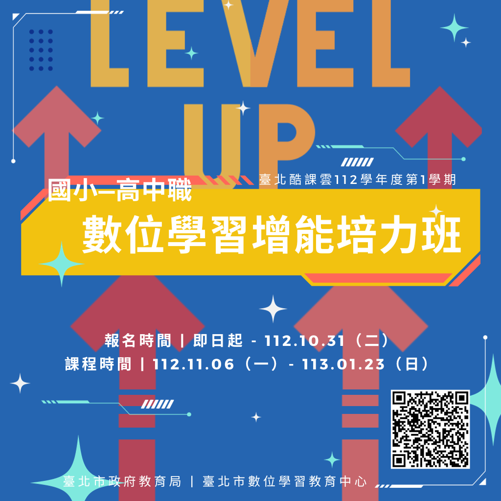二、為持續推廣臺北酷課雲平臺使用及培育學生自主學習能力,落實數位教育資源共享理念,本局於112學年度第1學期辦理「國小—高中職數位學習增能培力班」,提供各學層學生免費課後線上課程服務。