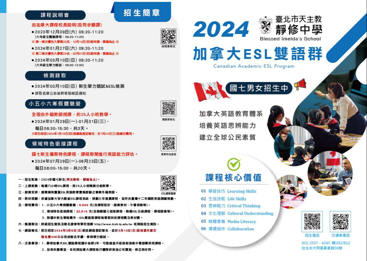 一、為使古亭家長與學生充分了解靜修中學加拿大雙語課程、全人菁英課程之入學資訊,舉辦招生說明會,如下所示: