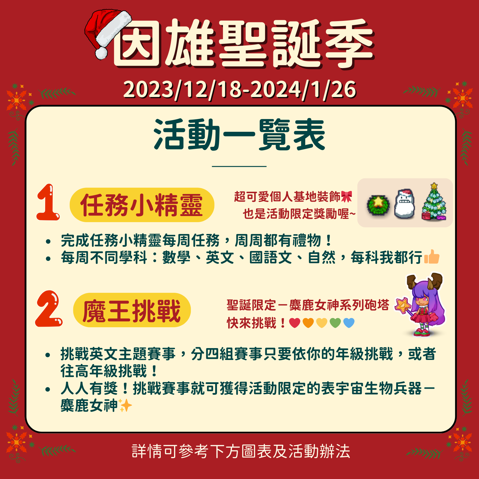 二、旨揭活動於112年12月18日(星期一)起至113年1月26日(星期五)止,每日7時至22時,歡迎全國師生踴躍參加。詳細活動內容請參閱官網及臉書粉絲專頁。