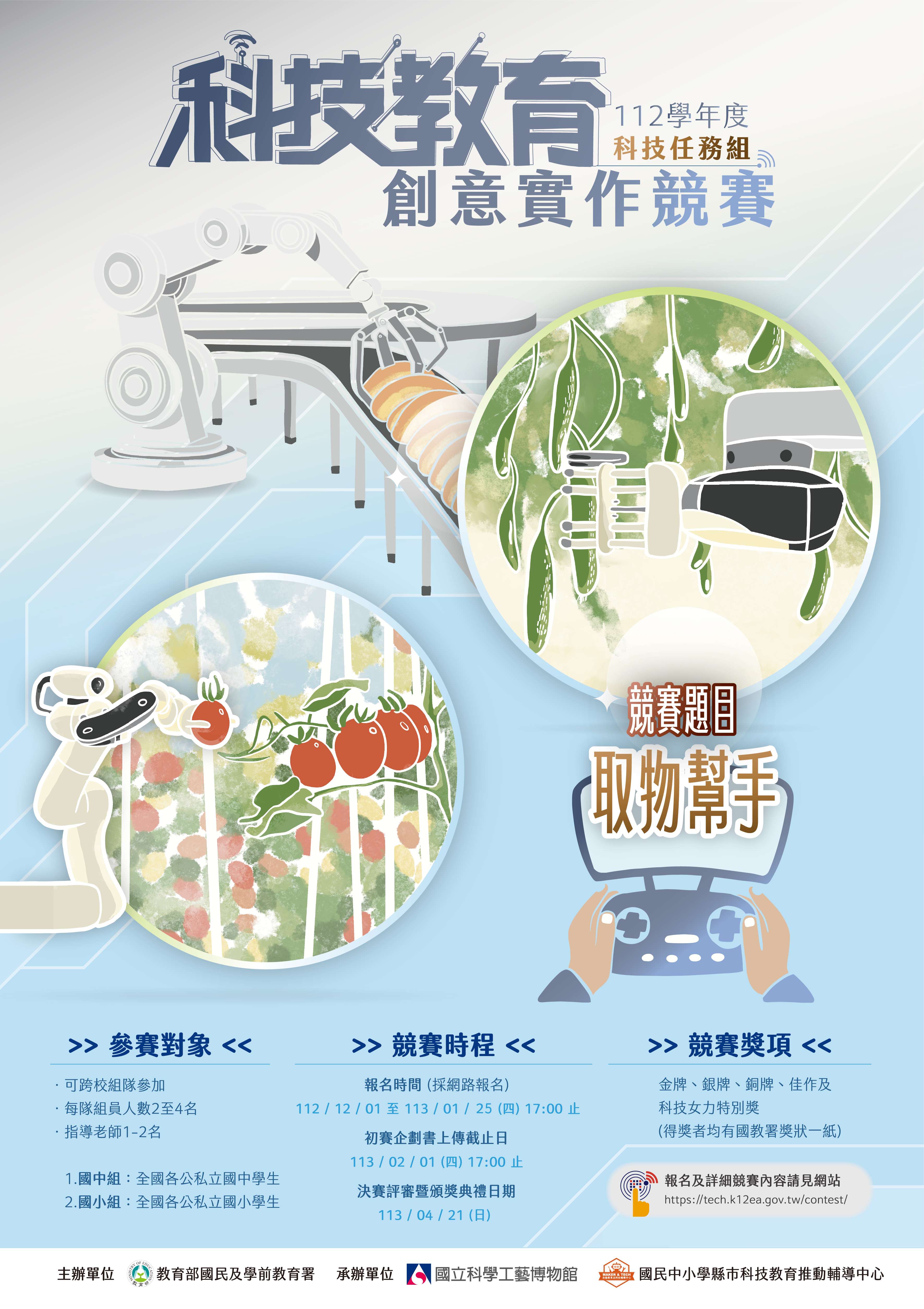 二、旨揭競賽原報名時間至112年1月18(星期四)截止,現延長至113年1月25日(星期日)下午5時止,競賽資訊詳見競賽網站,請鼓勵所屬師生踴躍報名參加。