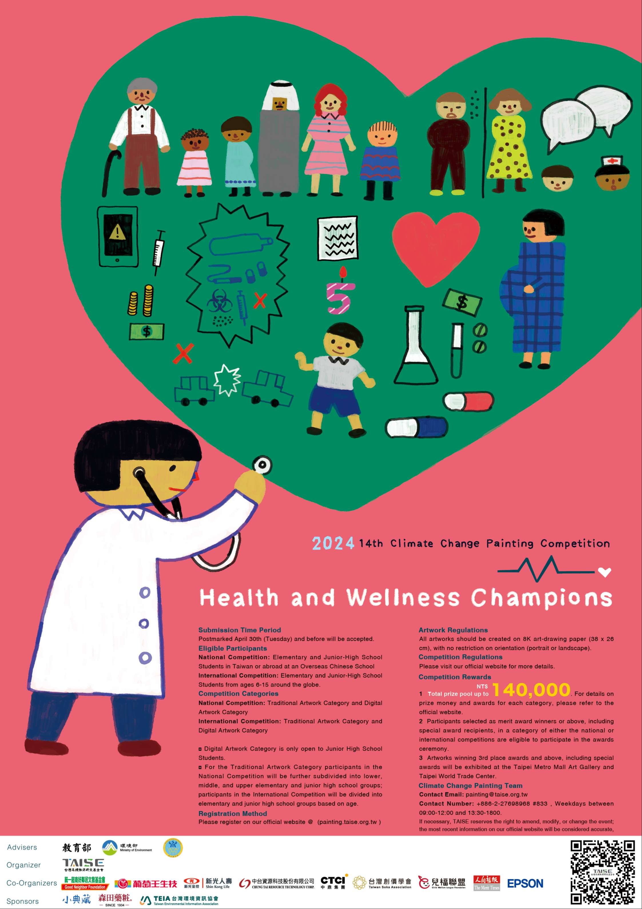 二、第14屆為呼應聯合國永續發展目標(SDGs)第3項「健康與福祉」,以「健康小大使」為主題,提升師生對傳染病的 認知並共同探討如何預防傳染疾病;同時學習健康的生活方式、情緒管理等等,亦須充分了解各項子目標的內容, 攜手邁向健康、平安生活。此繪畫比賽也呼應第13項,採取氣候行動並提升大眾相關意識。