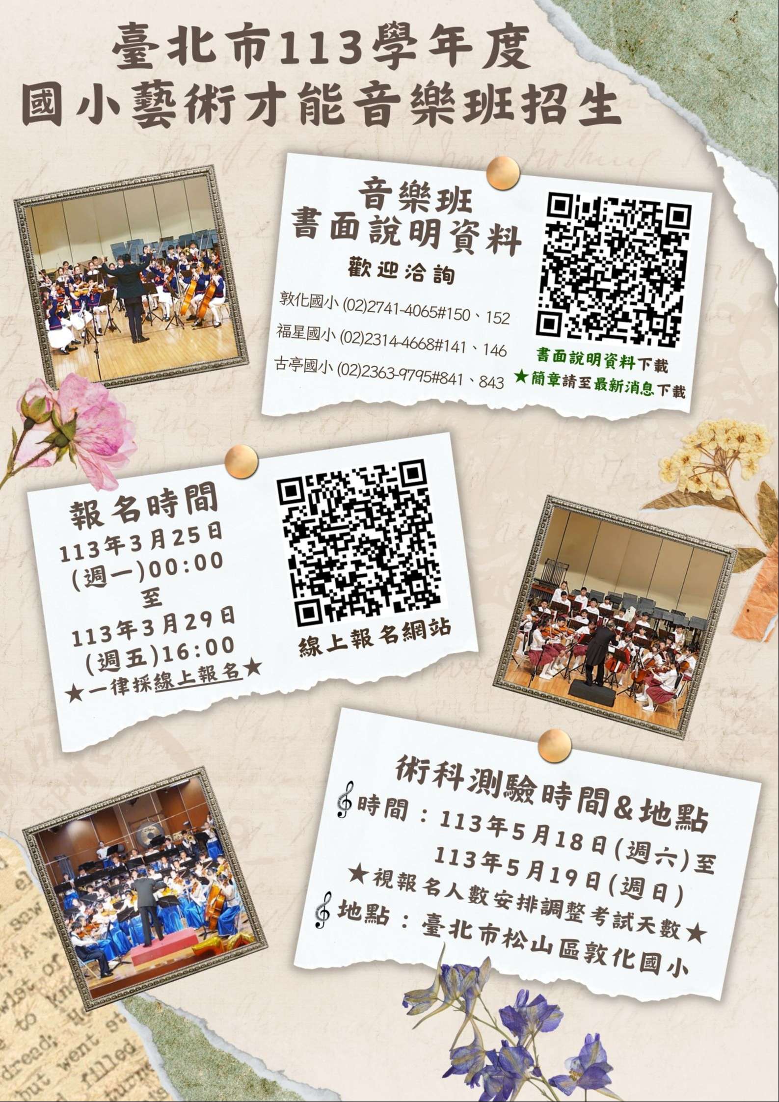 二、報名時間及方式:113年3月25日(星期一)00:00起至3月29日(星期五)16:00止,於本市國中小藝才班鑑定報名系統報名。
