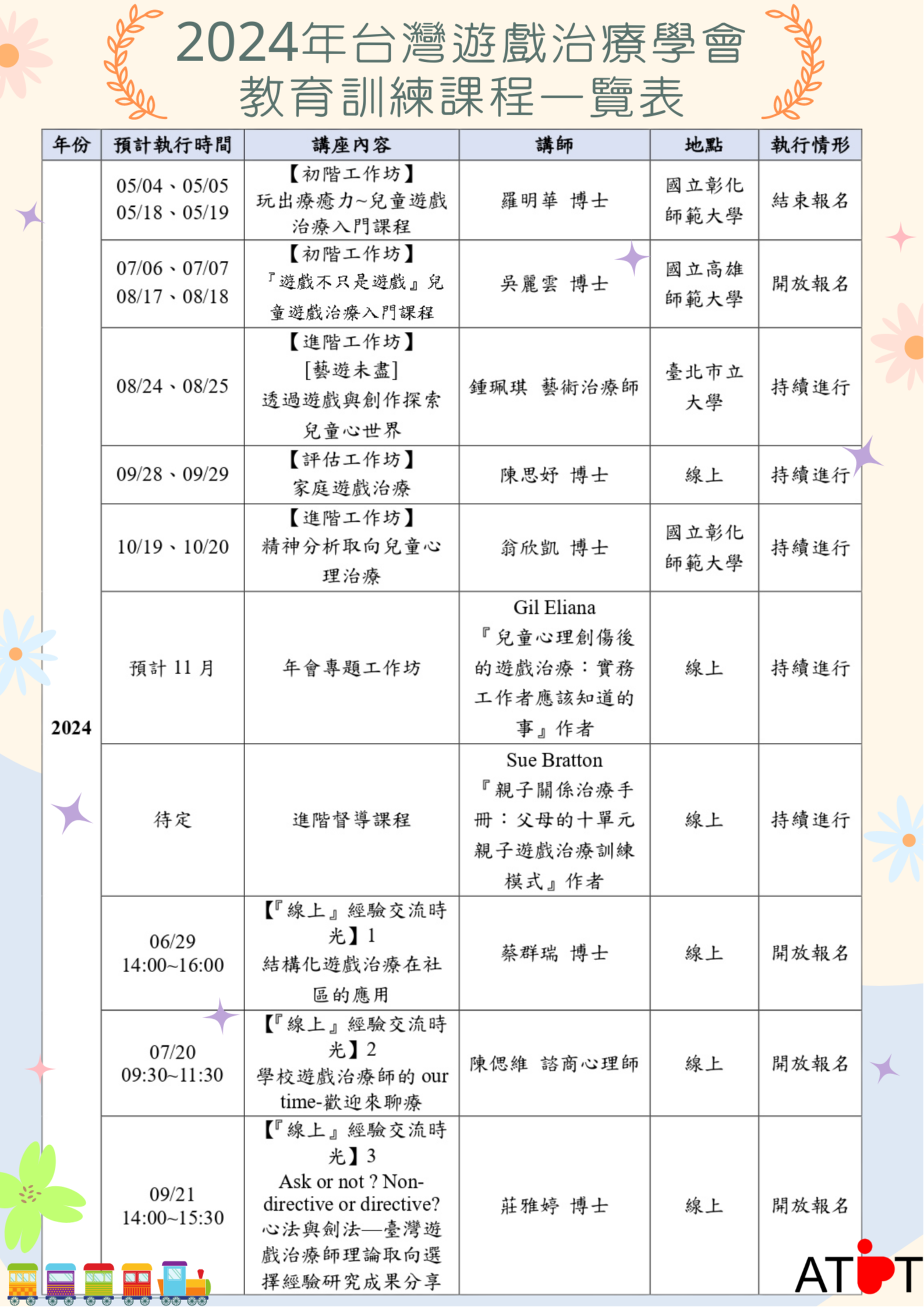 一、台灣遊戲治療師認證積分課程─2024『線上』經驗交流時光活動及時間。