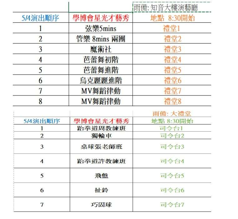 5/4學博會星光才藝秀共15個社團精彩演出,活動結束後表演影片將公告學校校網「古亭影音」,歡迎家長點閱欣賞!