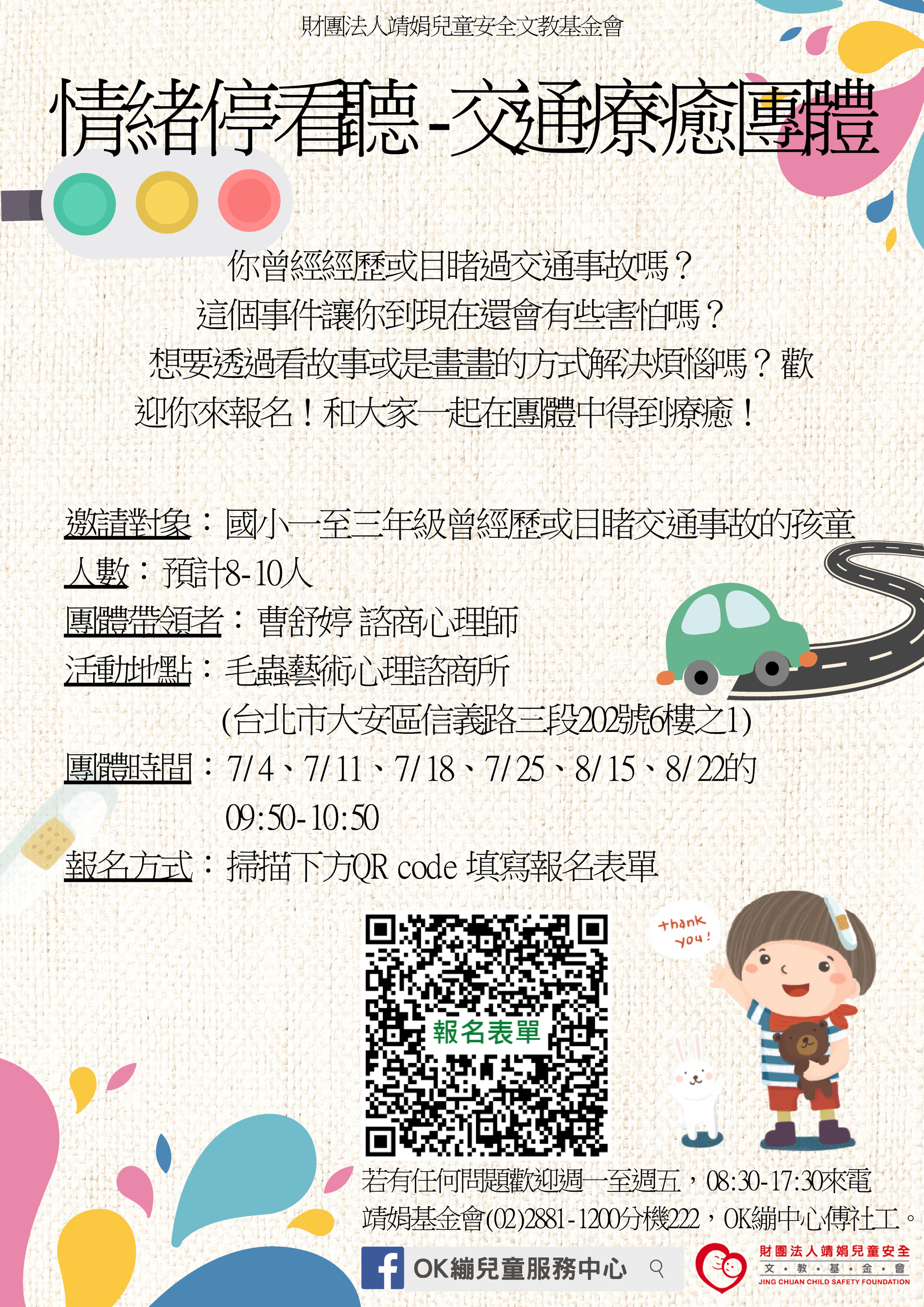 邀請對象:國小一至三年級曾經歷或目睹交通事故的孩童