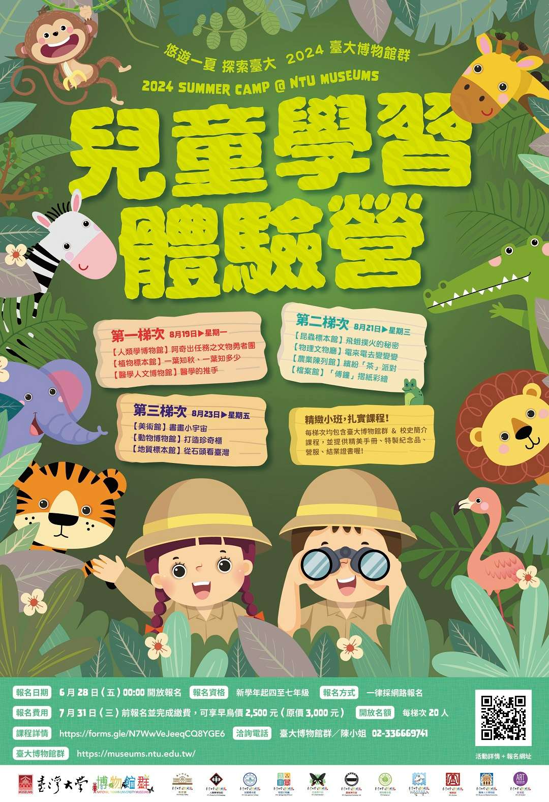 二、「悠遊一夏 探索臺大:2024臺大博物館群兒童學習體驗營」相關資訊如下: