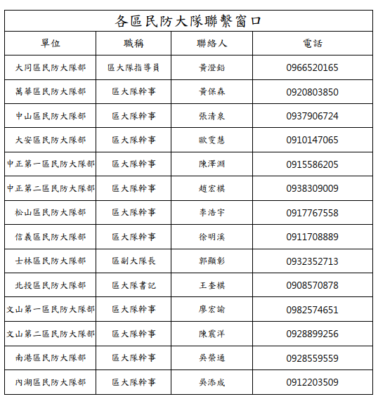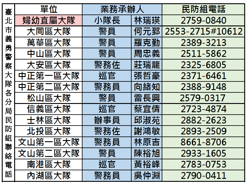 四、檢附導護志工福利說明、義警、民防大隊聯繫資訊各1 份。