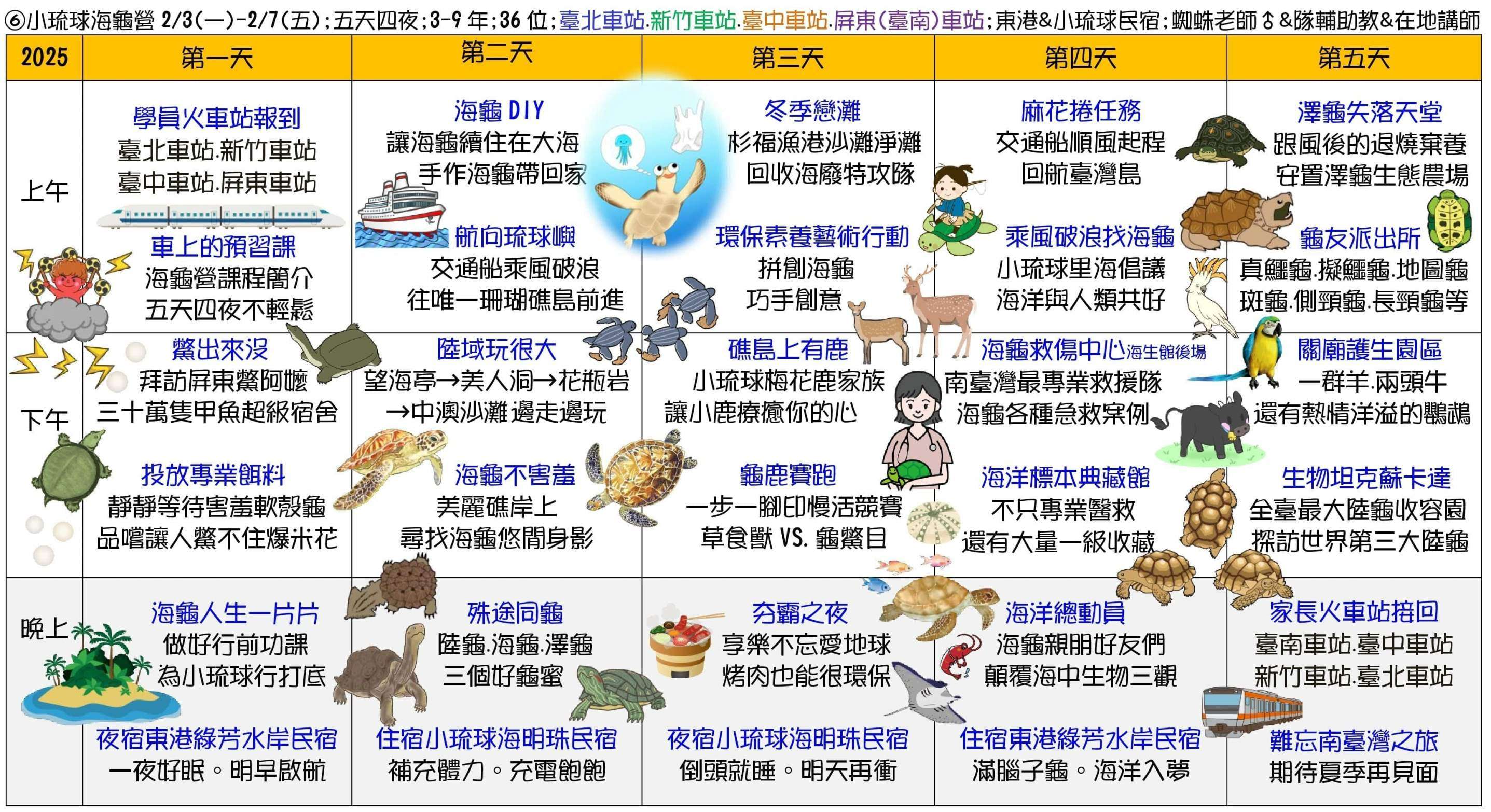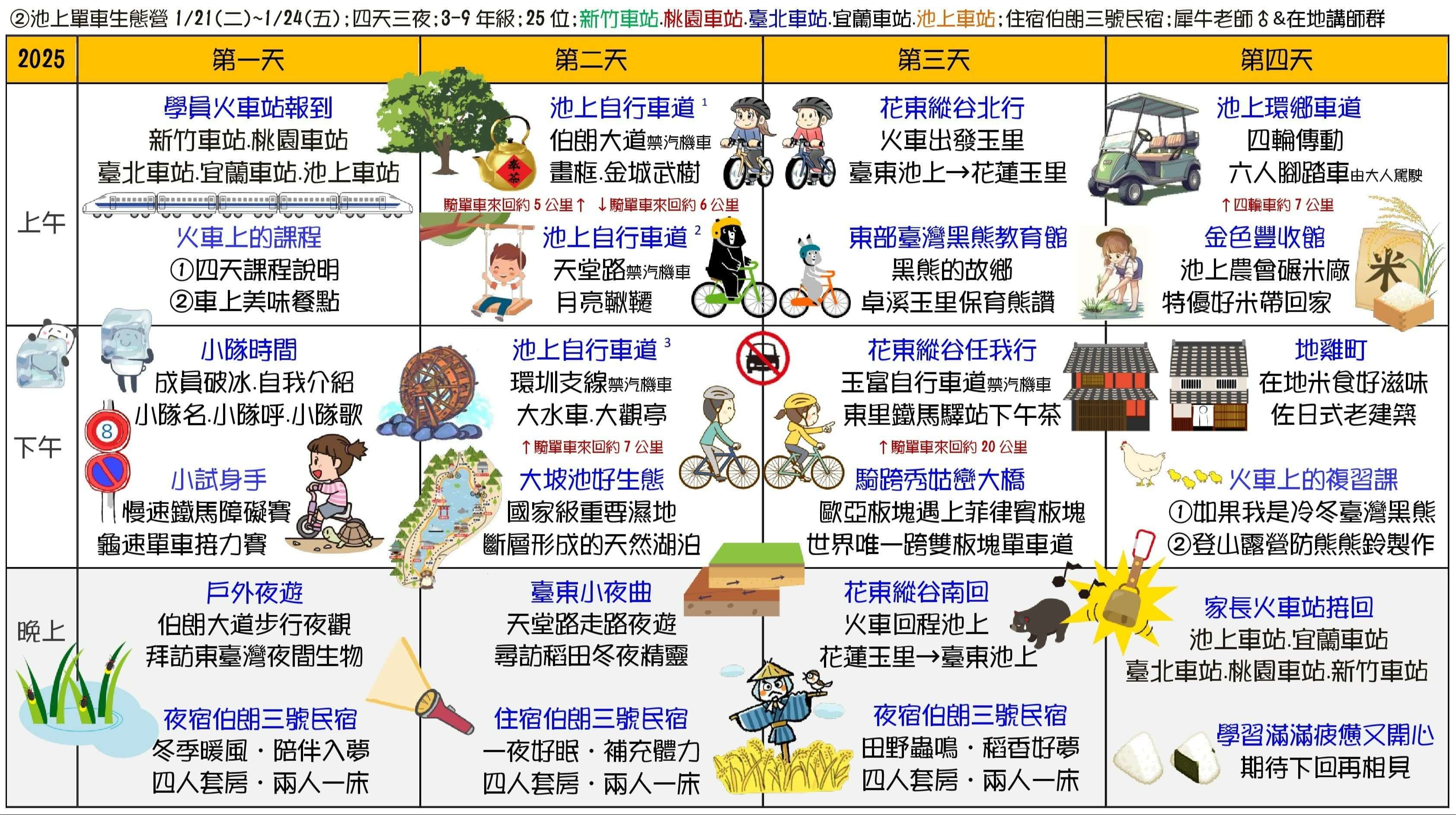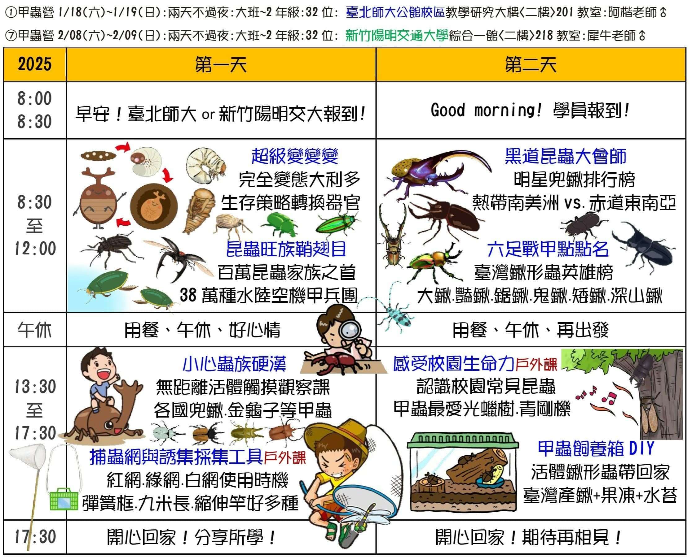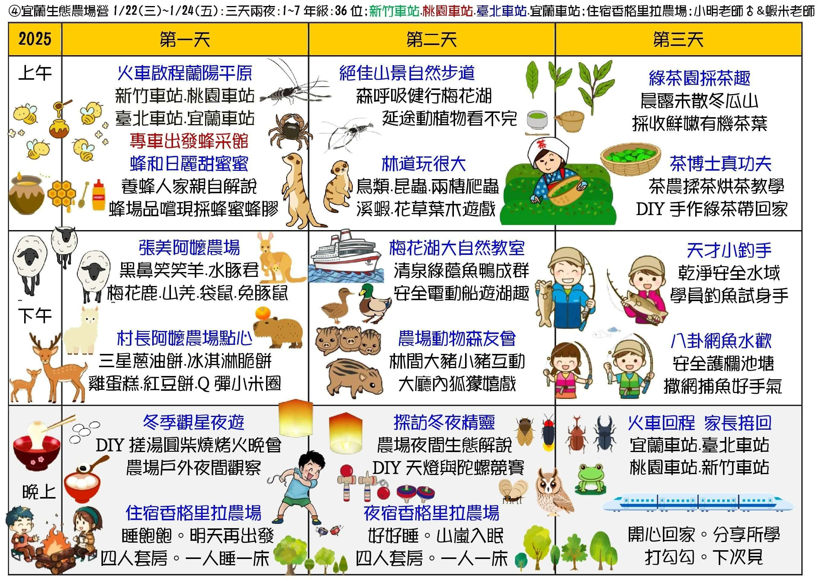 一、2025生態素養冬令營日期1/18~2/9,招生涵蓋大班-九年級學員,依不同課程分齡參加,詳細請見網站 。