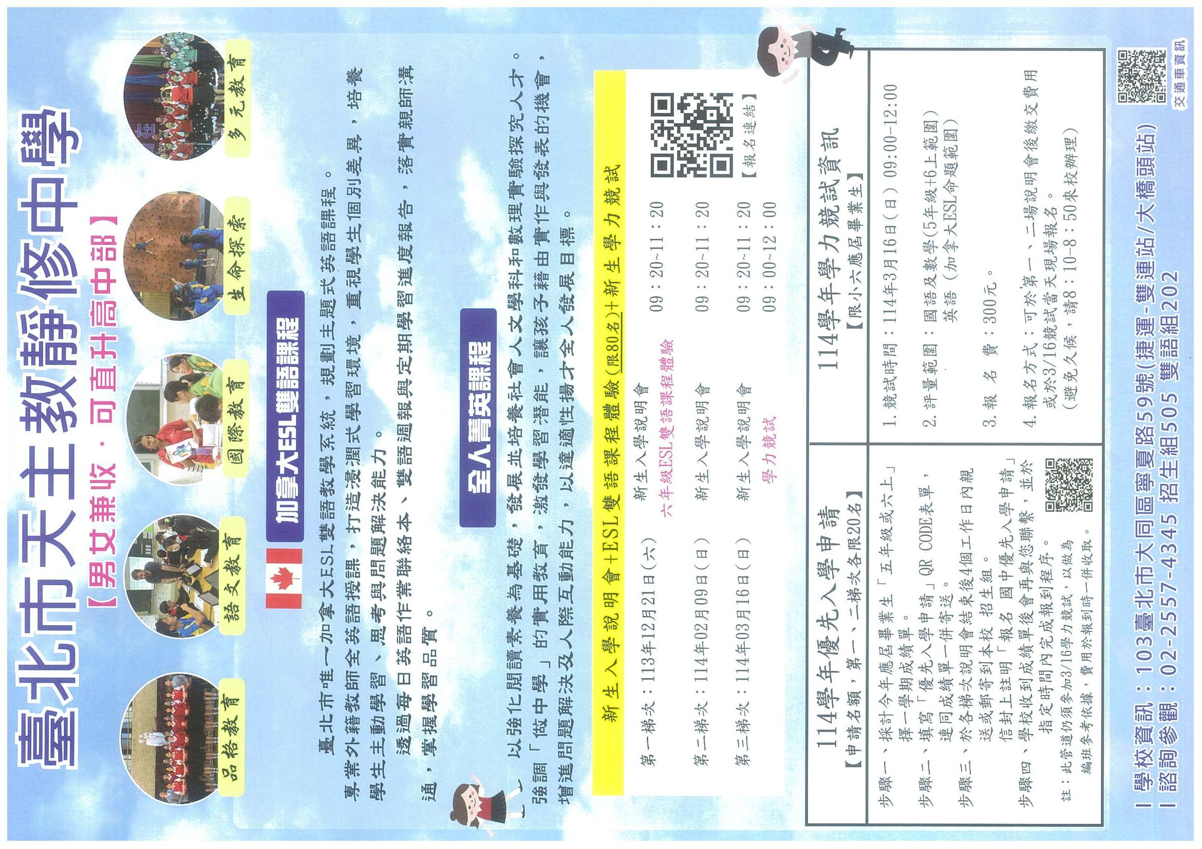 (一) 第一場說明會與六年級ESL雙語課程體驗:113年12月21 日(六)上午09:20-11:20。