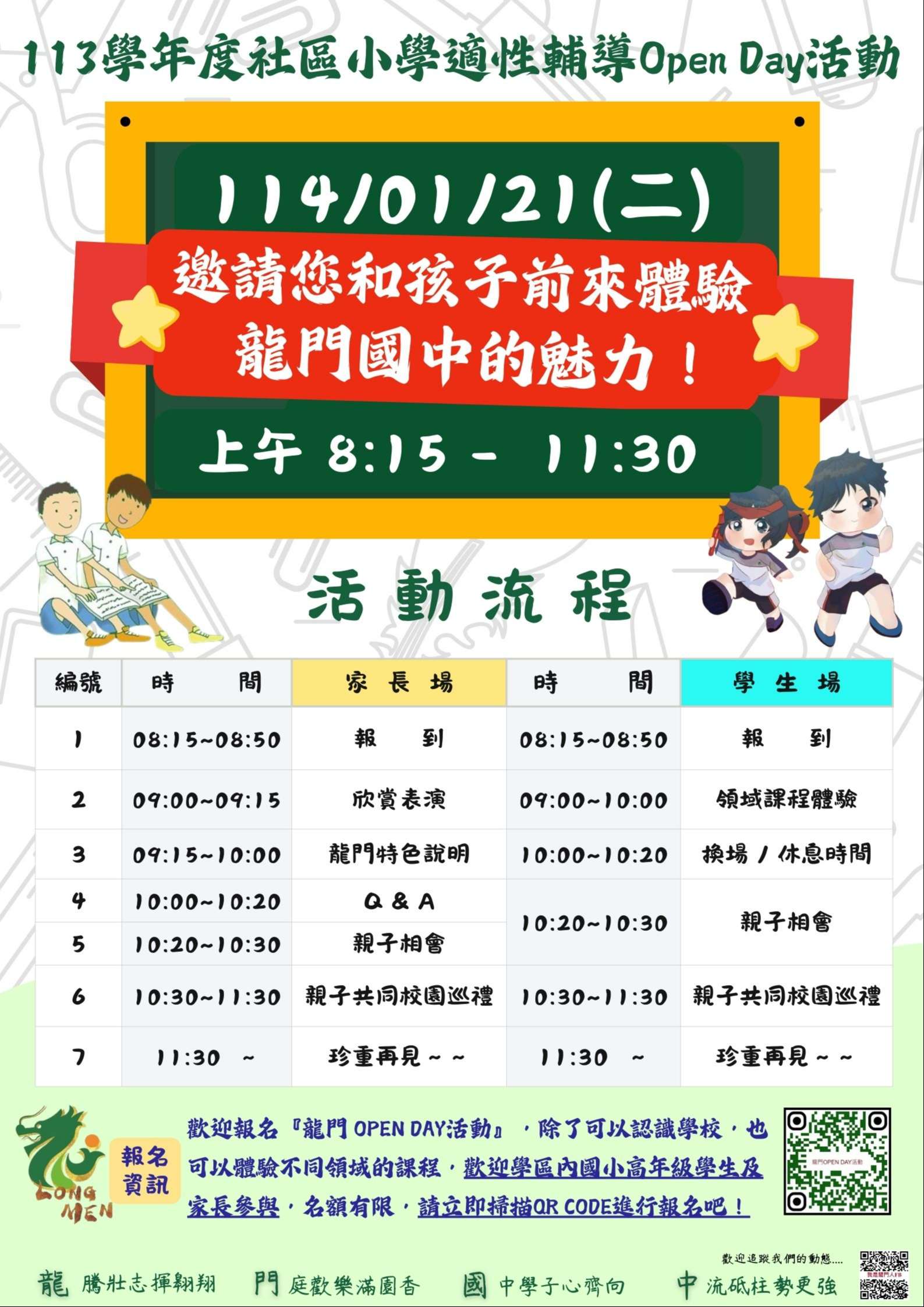 一、提供社區小學家長與學生充分瞭解本校特色與校園環境, 增進適應國中學習與生活能力,作為適性入學參考。擬邀請5、6年級家長及學生蒞校參加,詳情說明如下: