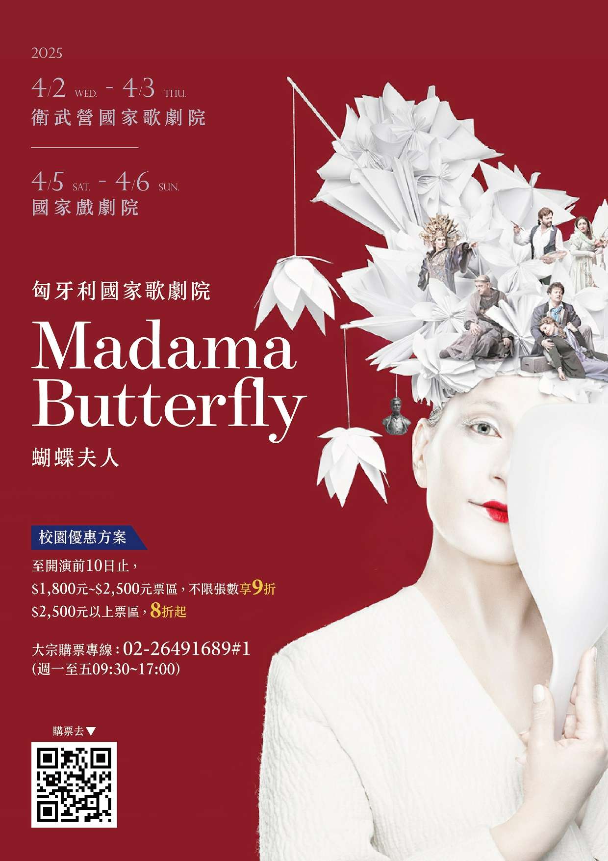 (一)歌劇《蝴蝶夫人》台北國家戲劇院1、2025/4/5(六)14:30、19:302、2025/4/6(日)14:30