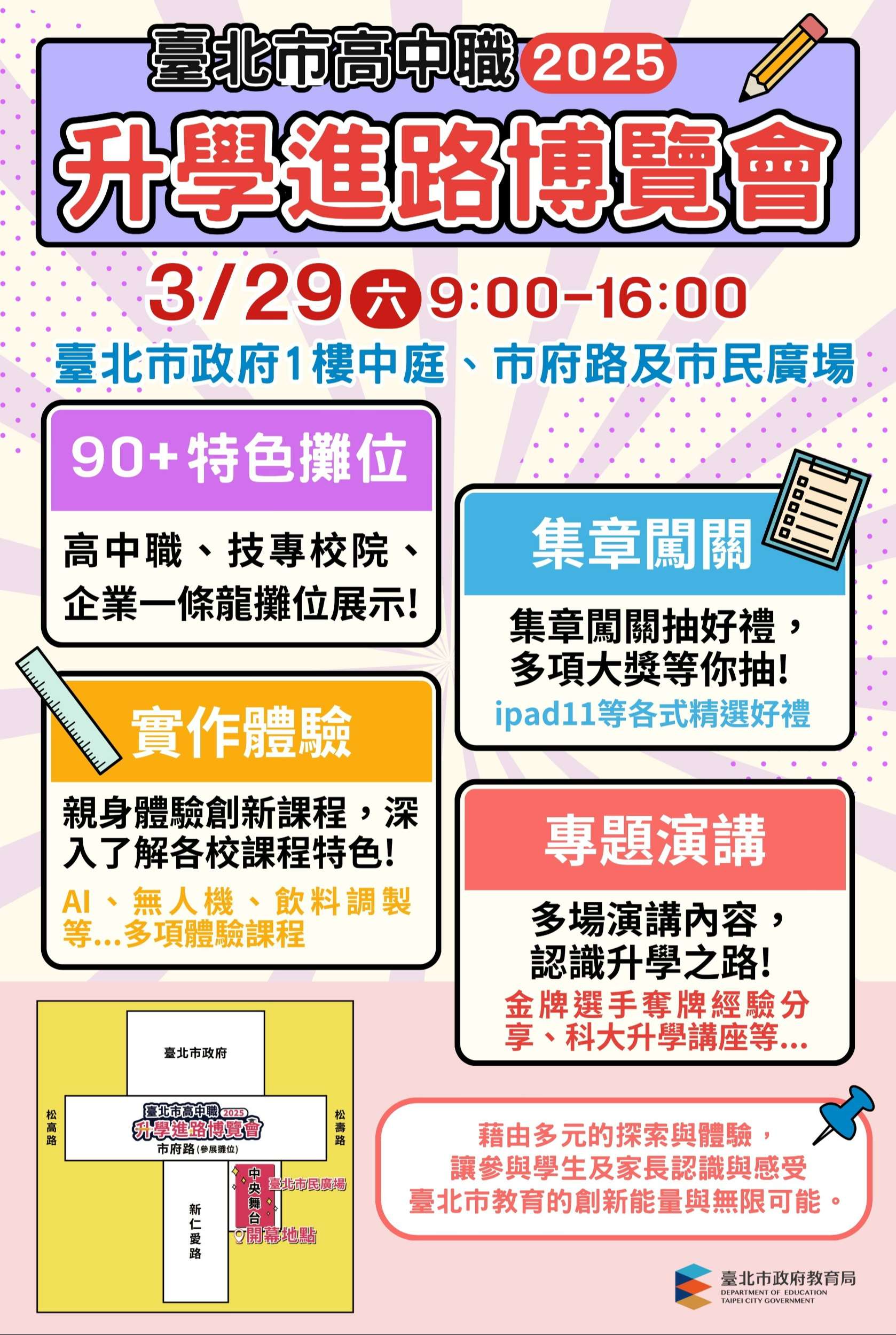 一、依據臺北市2025年高中職升學進路博覽會實施計畫辦理。