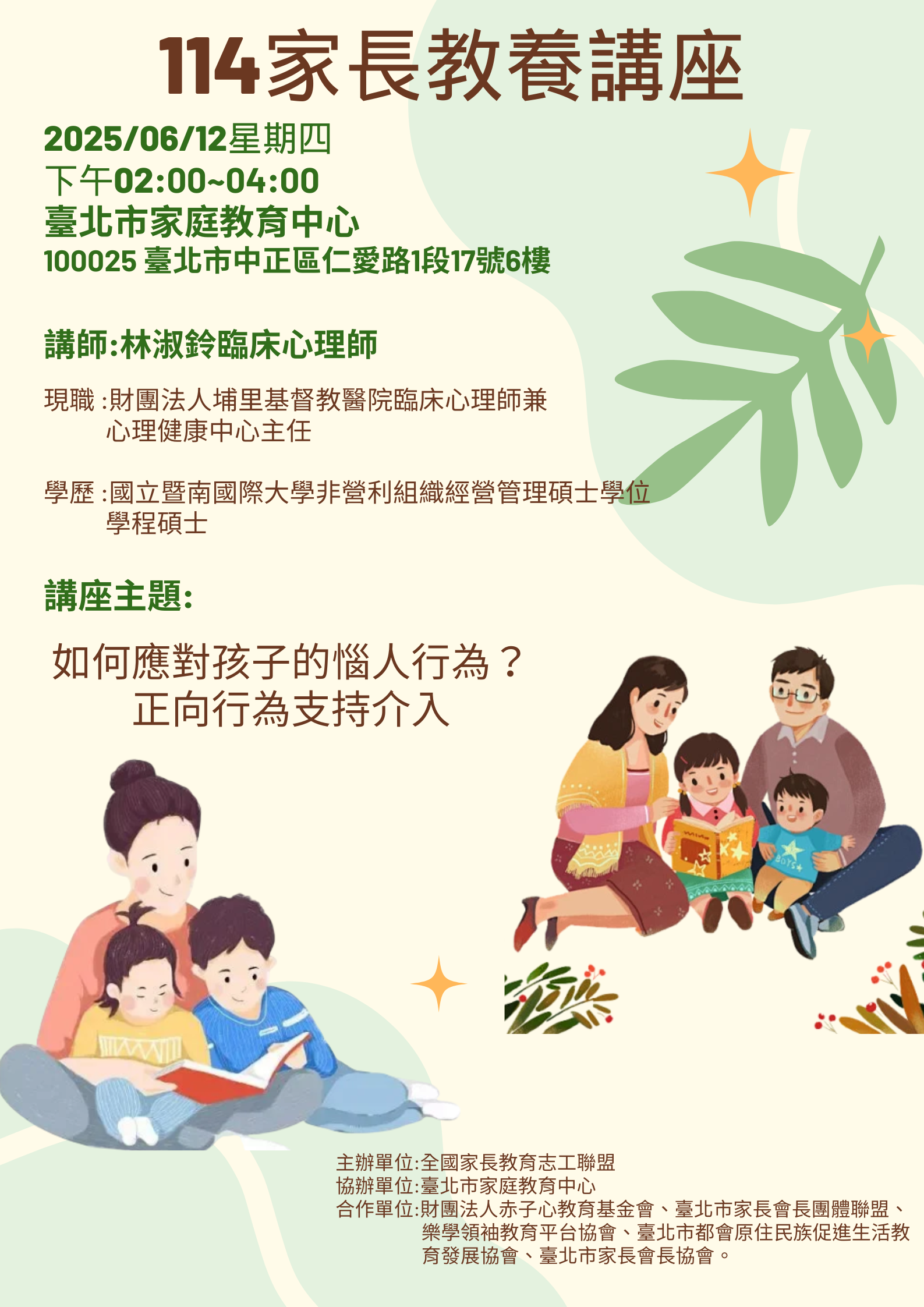 四、活動聯絡人:社團法人全國家長教育志工聯盟吳采翎秘書,電話:02-2388-2356。