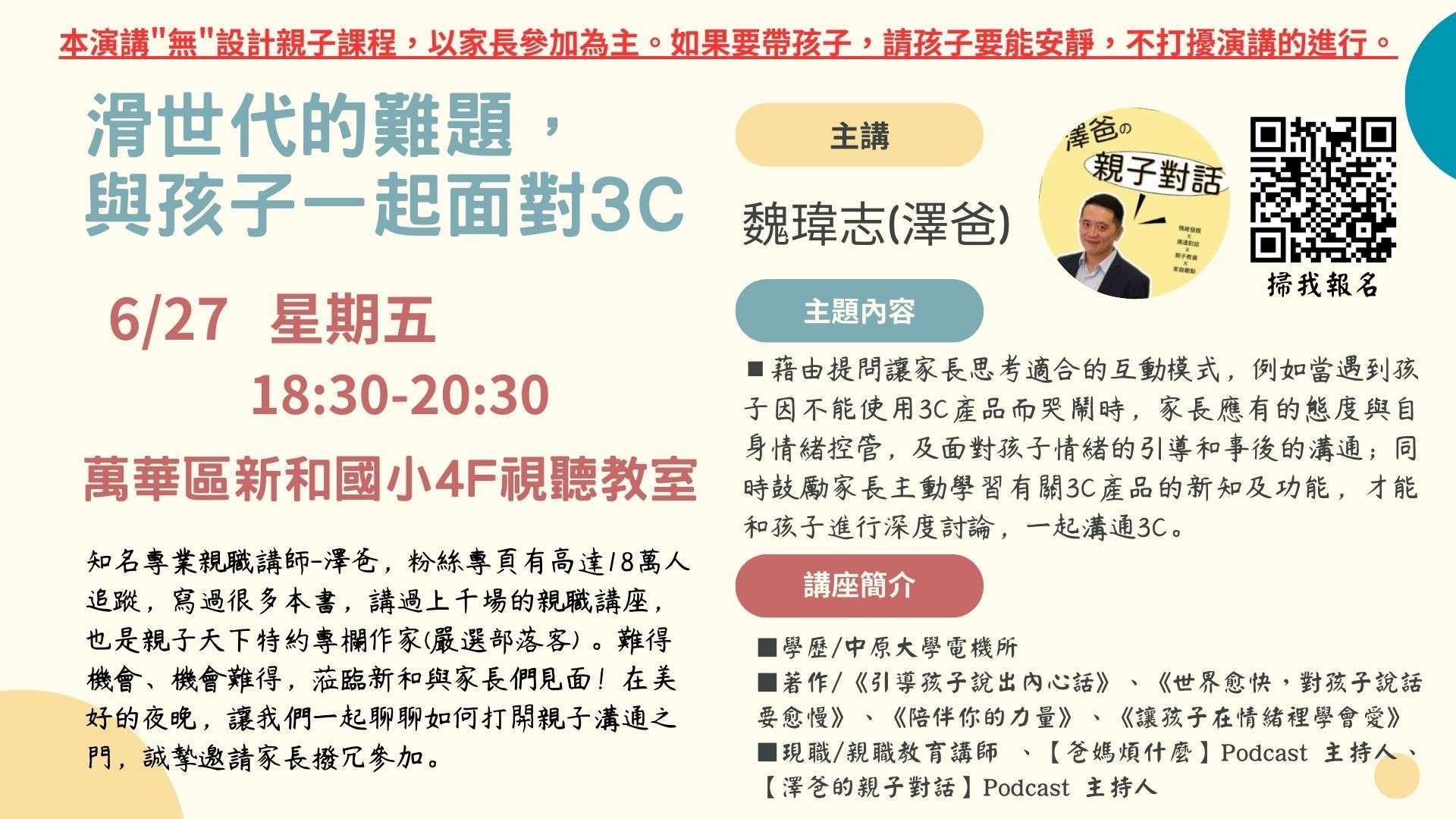 二、講座主題:滑世代的難題,與孩子一起面對3C
