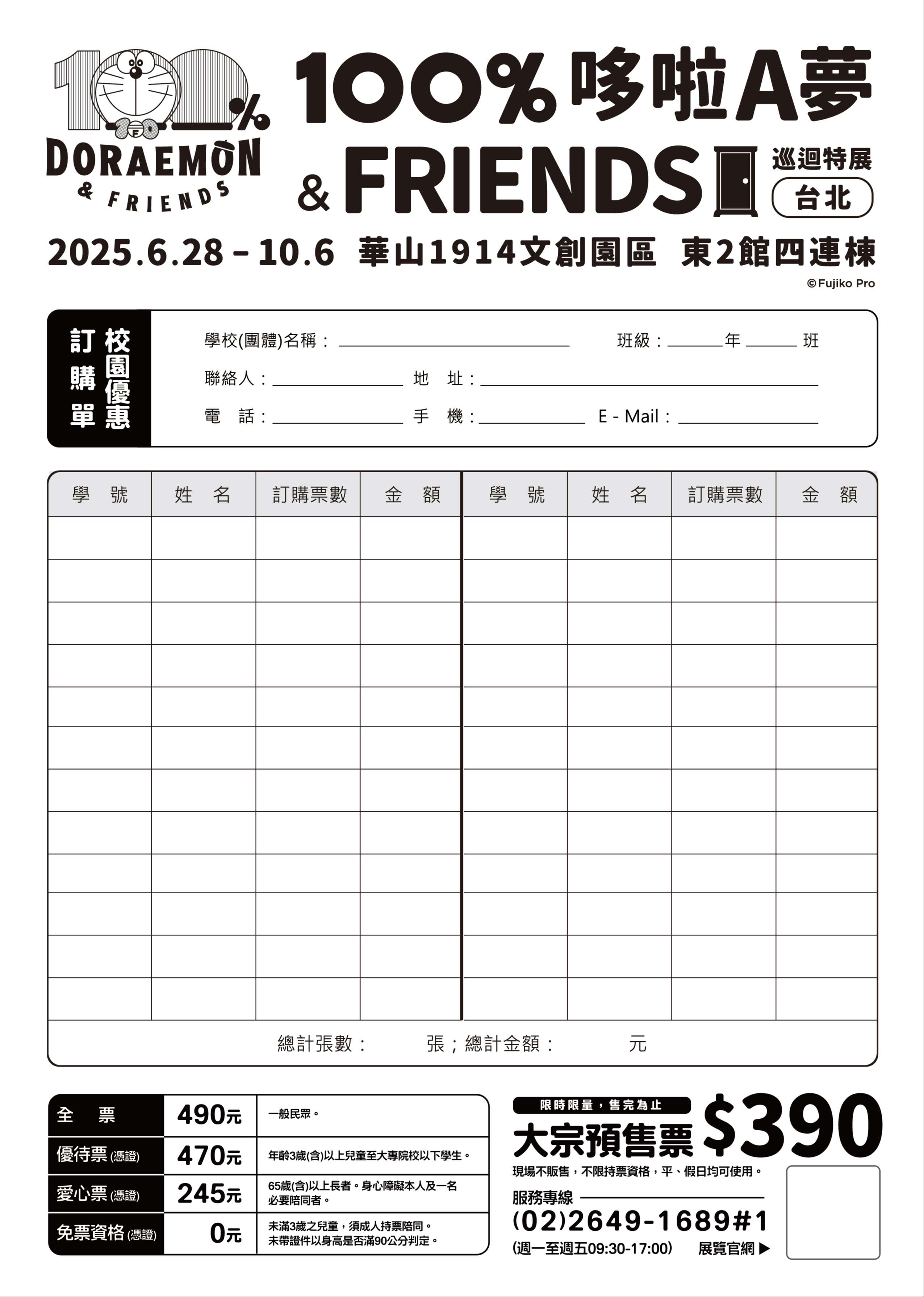 三、「100%哆啦A夢&FRIENDS巡迴特展 台北站」基本資訊: