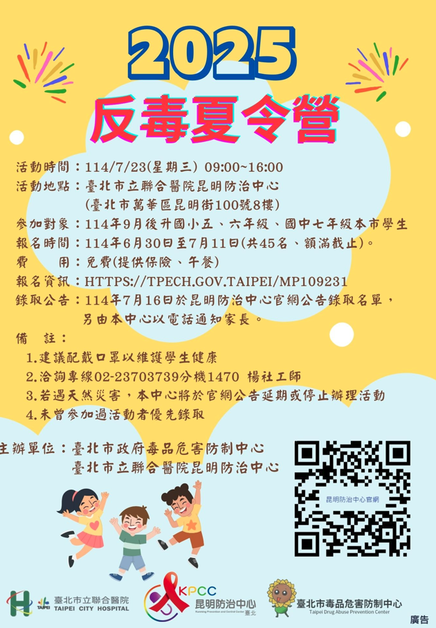 三、活動地點:臺北市立聯合醫院昆明防治中心(臺北市萬華區昆明街100號8樓)。