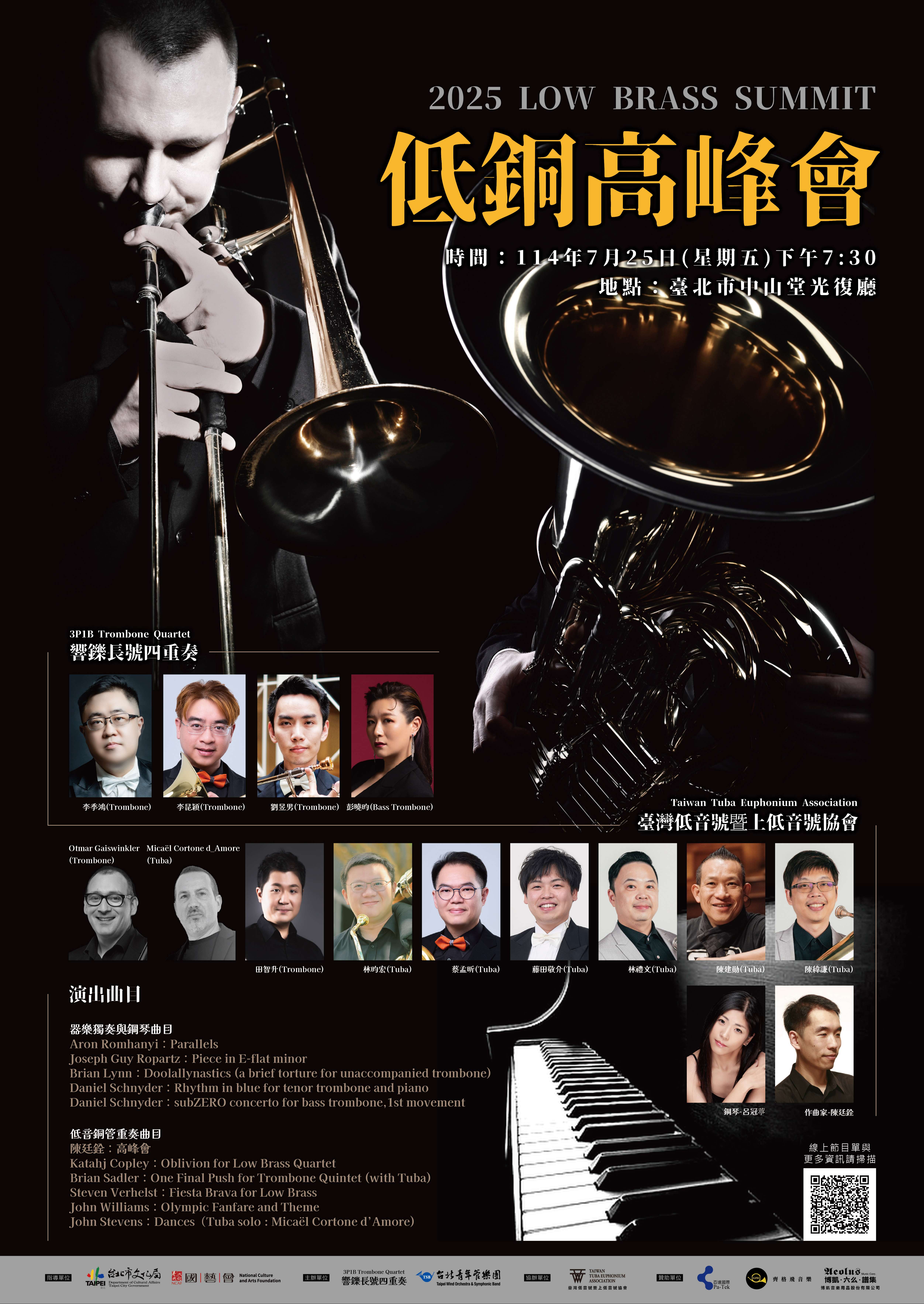 一、由臺灣職業樂團長號首席與國家交響樂團低音長號彭曉昀老師組成的響鑠長號四重奏,將帶來一連串精彩萬分的長號獨奏與重奏曲目。更邀請國內外低音號演奏名家一同參與,是一場不可錯過,精彩萬分的低銅音樂饗宴。
