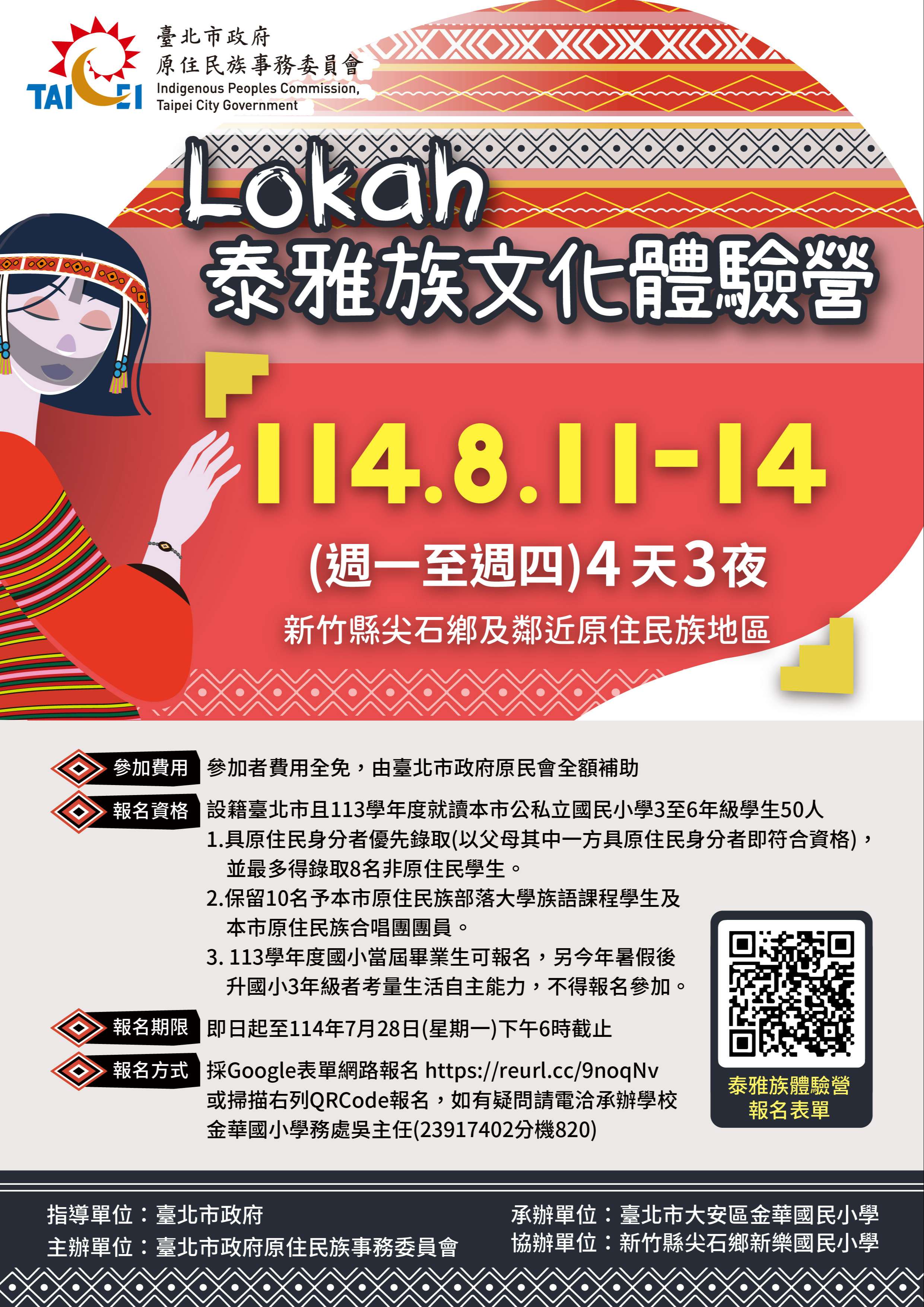 (一)活動日期:114年8月11日(一)至8月14日(四),共4天3夜。