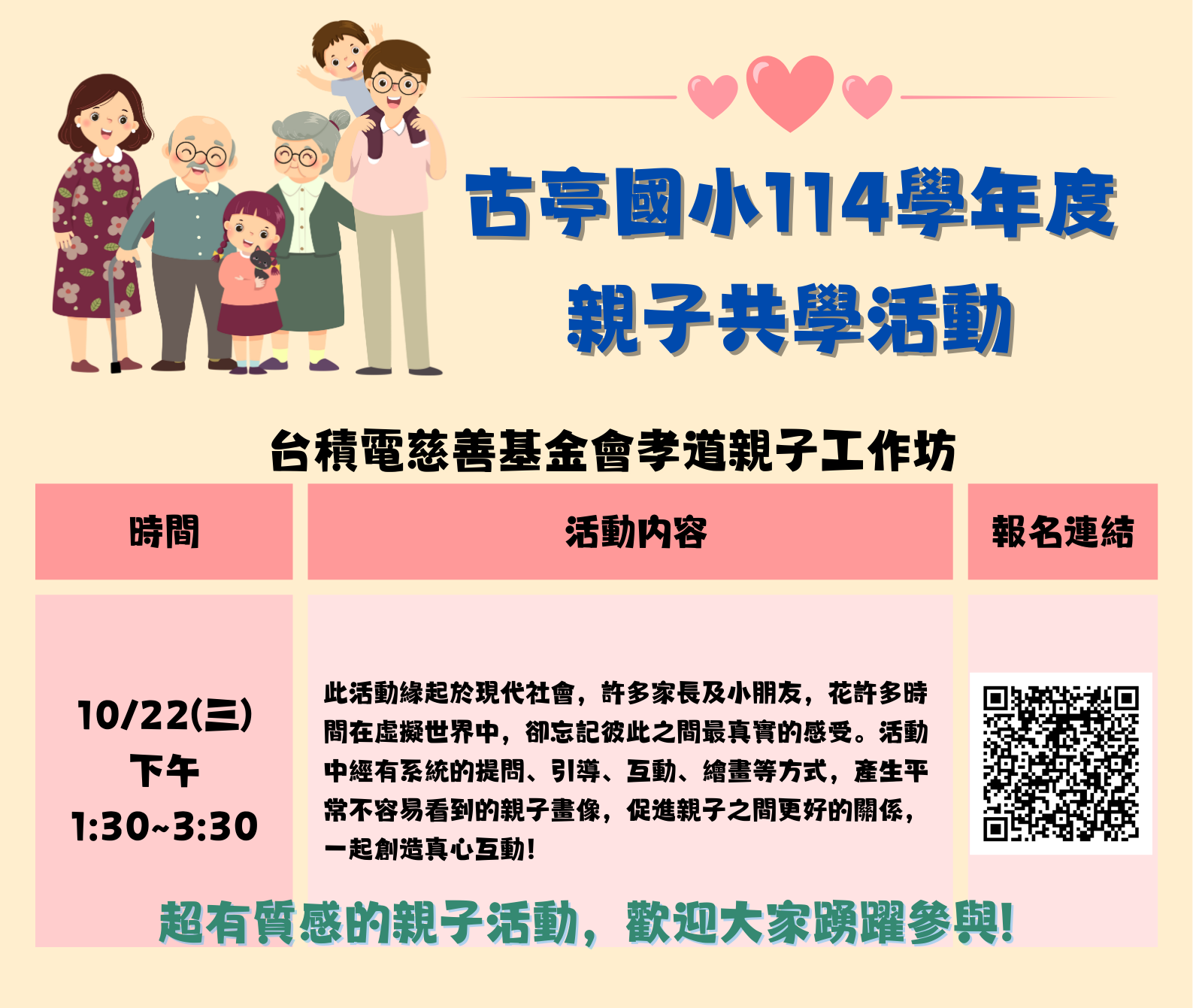 台積電慈善基金會 x 台北古亭國小孝道親子工作坊(額滿為止 )