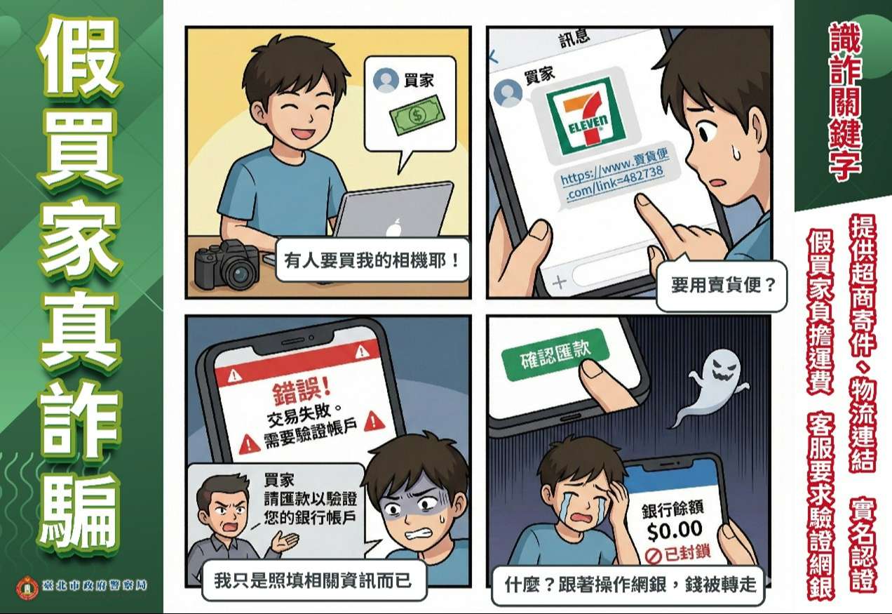 三、近期發現詐騙集團常用「假買家騙賣家」、「假中獎詐騙」等方式,誘導民眾點擊釣魚連結,騙取個人資料及金融帳戶等資訊,進而綁定電子支付盜領財物或將其帳戶內款項轉出。