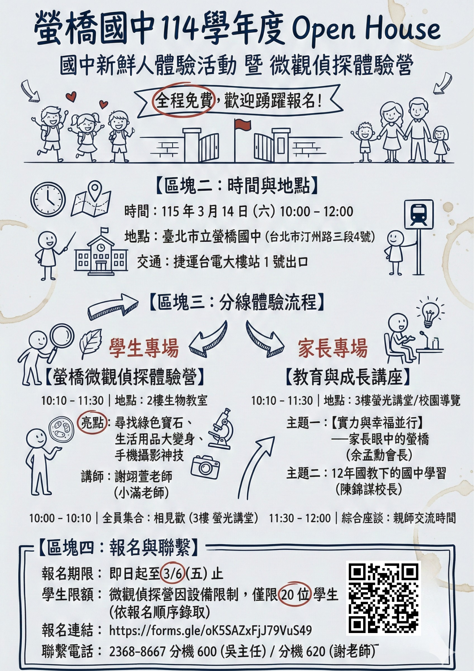 七、為作業流程,請參加的家長及學生於3/6(五)前完成google 表單報名,俾便活動預備。