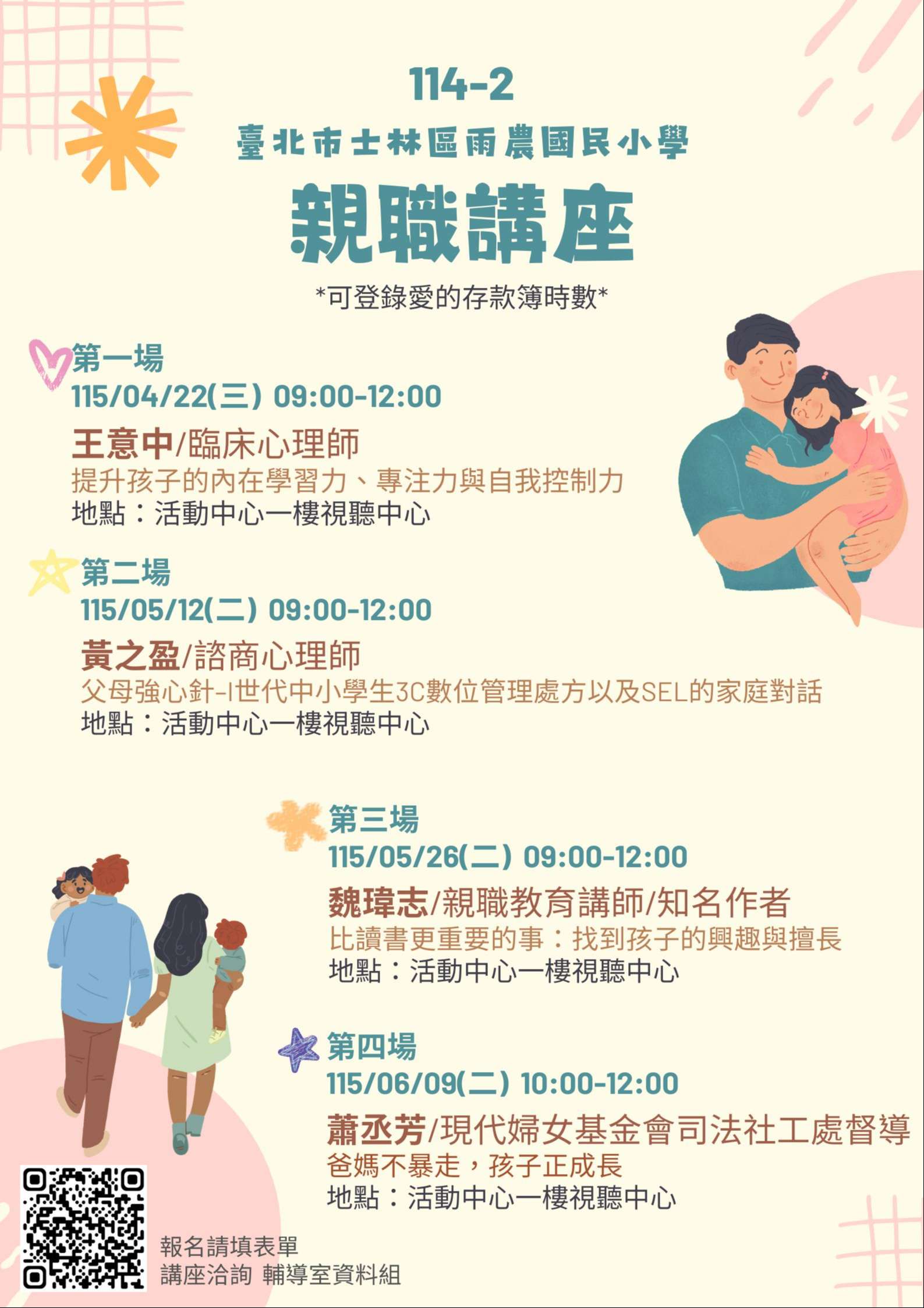 二、四場講座均核發愛的存款簿時數,活動報名連結