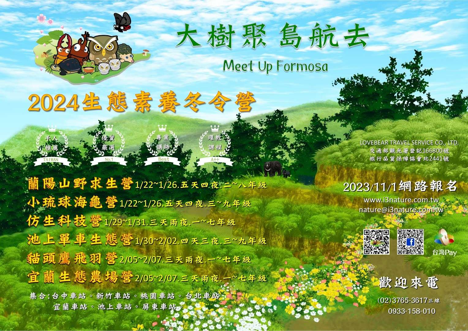 說明:愛上大自然文教有限公司將於113年寒假辦理【大樹聚 島航去】2024生態素養冬令營六個梯次;暨參展第五屆臺灣國際昆蟲博覽會一日展期活動。
