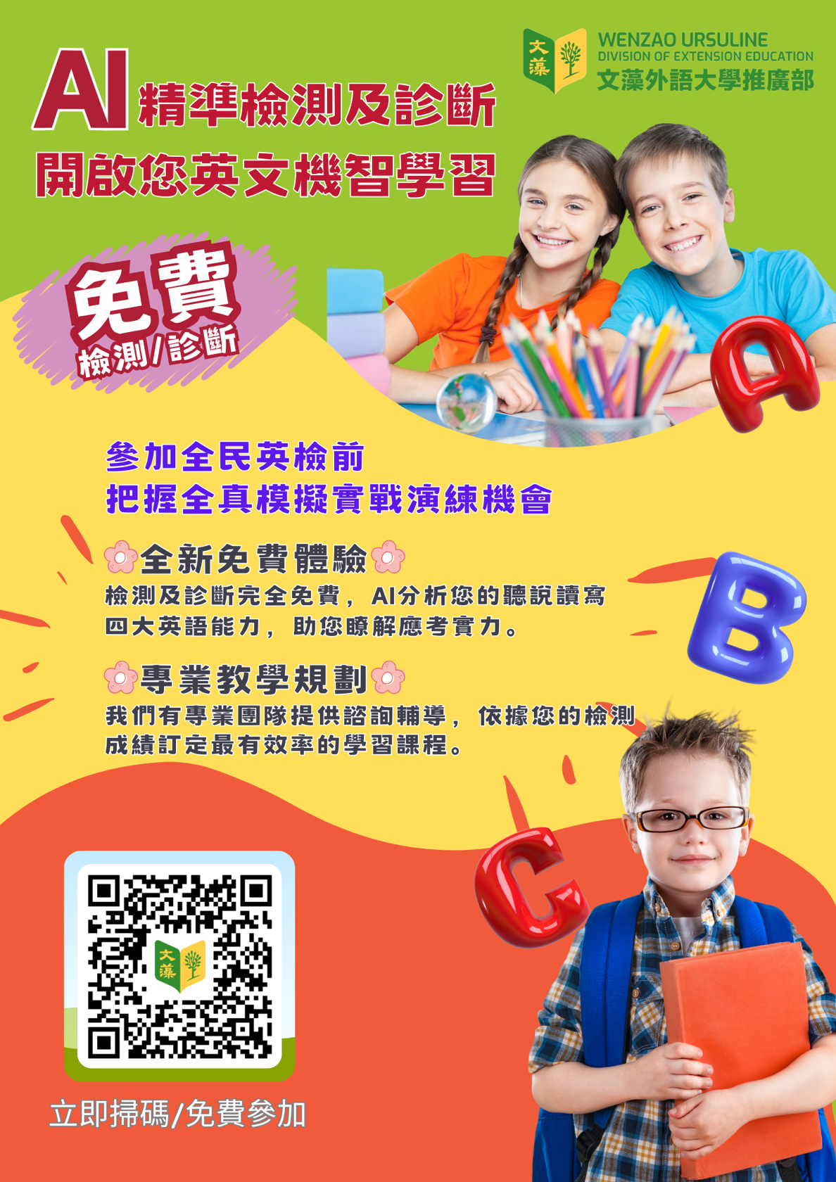 (一)內含三大程度檢定GEPT Kids-兒童英檢(A1程度)、GEPT初級英檢(A2程度)、GEPT-中級英檢(B1程度)。